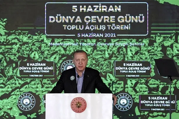 5 Haziran Dünya Çevre Günü dolayısıyla düzenlenen programda Başkan Erdoğan, yapımı tamamlanan millet bahçelerinden 10'unun açılışını daha gerçekleştirdi.