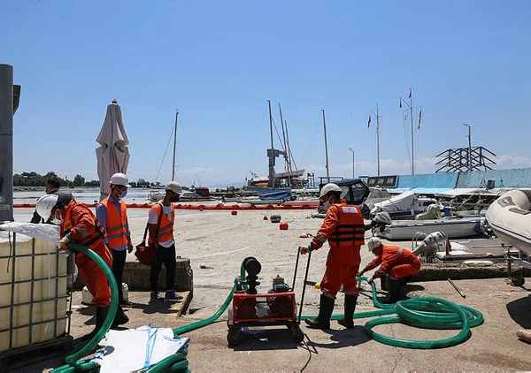 Ekipler daha sonra su üstünde kütle halinde oluşan müsilajları depolama tanklarına doldurdu.