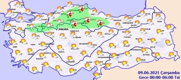 Parçalı ve çok bulutlu, gece saatlerinde sağanak ve gök gürültülü sağanak yağışlı