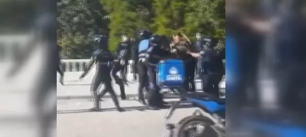Yaşananlar cep telefonu kamerasına yansıdı. Görüntülerde zabıtanın seyyar satıcıya cop ile vurması ve tekme atması yer aldı.