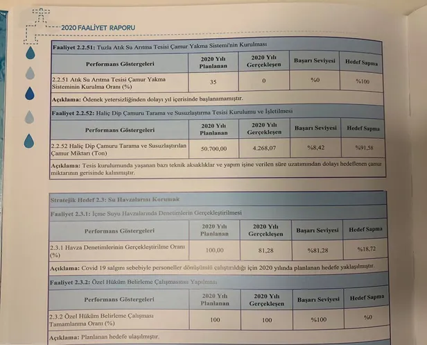 Sabah'ın haberine göre, faaliyet raporunda yer alan açıklamada ise, 'Tesis kurulumunda yaşanan bazı teknik aksaklıklar ve yapım işine verilen süre uzatımından dolayı hedeflenen çamur miktarının gerisinde kalınmıştır' ifadelerinin kullanıldığı görüldü.