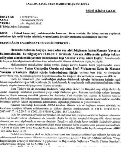 Ayrıca, sanık Seda Daşdan'ın avukatlığını yapan Bülent Yücetürk'ün aynı zamanda Yavaş'ın da avukatı olduğuna dikkat çeken Ilgaz, talepte şu ifadelere yer verdi: "İstinaf Başkanlar Kurulu ve ve BAM 10. Ceza Dairesi verdiği kararlarda suça konu bilgisayarın mülkiyetinin, zilyedinin
