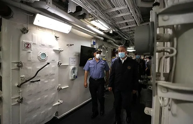 Ziyaret sonrasında helikopterle Libya açıklarındaki TCG Gelibolu Fıirkateyni'ne giden Akar, faaliyetlere ilişkin bilgi aldı, personelle bir araya geldi.