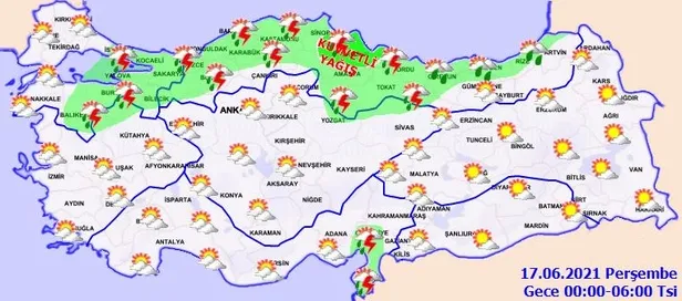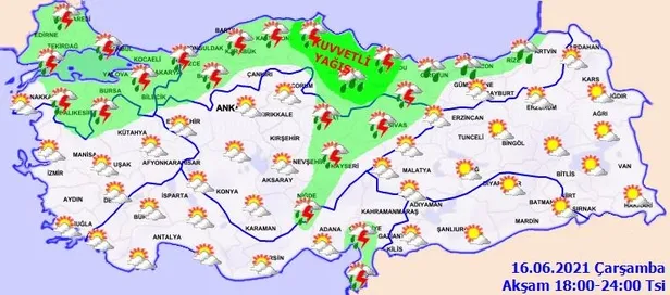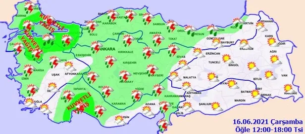 Meteoroloji Genel Müdürlüğü tarafından yapılan son değerlendirmelere göre, ülkemizin kuzey, iç ve batı kesimlerinin parçalı ve yer yer çok bulutlu, Marmara, Ege, Akdeniz, İç Anadolu, Batı ve Orta Karadeniz, Doğu Karadeniz kıyılarının yerel olmak üzere aralıklı sağanak ve yer yer gök gürültülü sağanak yağışlı, diğer yerlerin az bulutlu ve açık geçeceği tahmin ediliyor. Yağışların; Marmara Bölgesi (Kırklareli ve Edirne dışında), Antalya, Burdur, Isparta, Afyonkarahisar, Sinop, Samsun, Ordu, Amasya ve Tokat çevrelerinde yer yer kuvvetli olması bekleniyor. Hava sıcaklığında önemli bir değişiklik olmayacağı tahmin ediliyor.