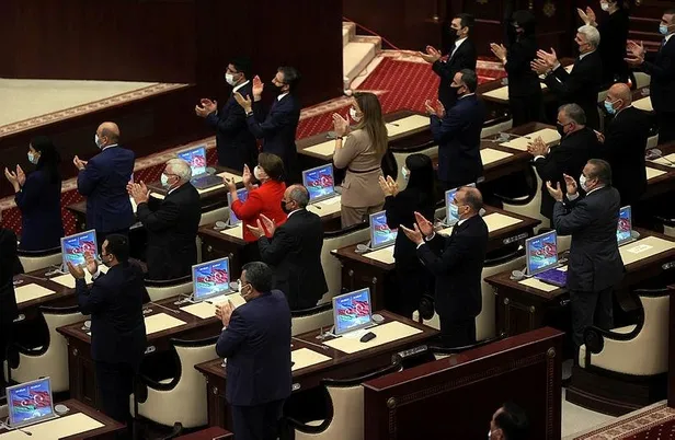 Son dakika haberine göre, Başkan Recep Tayyip Erdoğan, Azerbaycan Milli Meclisi'nde önemli açıklamalarda bulundu. Başkan Erdoğan, "Bugün de bütün imkanlarımızla Azerbaycan'ın yanındayız, bütün dünya bilsin ki, yarın da yanında yer alacağız." dedi. Karabağ zaferinin kimseyi rahatsız etmemesi gerektiğini belirten Erdoğan, "Bu, yıkımın değil inşanın, zulmün değil adaletin zaferidir." ifadelerini kullandı. Öte yandan Erdoğan, Meclis'e hitabının ardından önce Türk ve Azerbaycan şehitliğini ziyaret etti sonra Azerbaycan Görev Grubu askerlerini kabul etti.