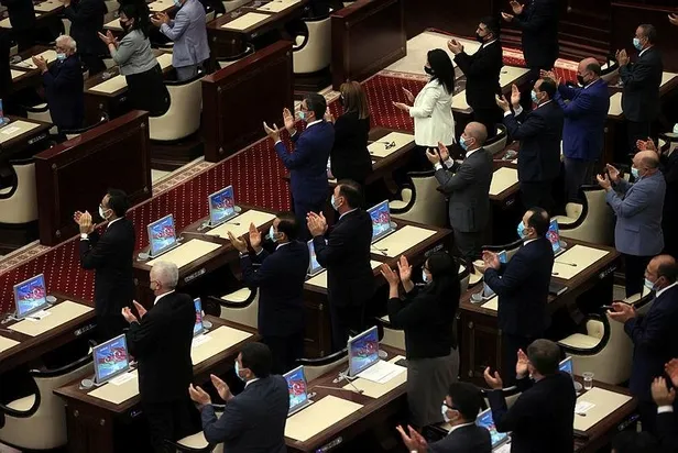 "Geçtiğimiz 30 yılda Karabağ'da yaşanan kriz döneminde kimlerin eline ne geçtiği, kimlerin bu işten kazançlı çıktığı, kimlerin de kaybettiği gayet iyi biliniyor. Canı yananlar, kanı dökülenler, acı çekenler, maddi ve manevi olarak kaybedenler sadece Karabağ'da yaşayan insanlardır. Kolay değil 30 yıl. Benim Azeri kardeşlerim 30 yıl kendi meskenlerinden ne yazık ki kaçkın hale geldiler ve oralar işgal halindeydi. 30 yılın sonunda hamdolsun tekrar işgal altında olan bu topraklar sahiplerine kavuştu. Karabağ'da 30 yıldır süren ihtilafın çözümsüz kalmasına seyirci olanlar, daha doğrusu krizin sürmesi yönünde gayret gösterenler ise hep kazanan tarafta olmuşlardır. Kalıcı barışa giden yolun, bölgedeki tüm halkların ve devletlerin karşılıklı güven temelinde geliştirecekleri iş birliklerinden geçtiğine inanıyoruz. Büyük bir liderlik göstererek Karabağ Zaferi'ni ve barışı Azerbaycan'a kazandıran Azerbaycan ordularının ali başkomutanı, Azerbaycan Cumhurbaşkanı hürmetli kardeşim İlham Aliyev'i bir kez daha tebrik ediyorum."