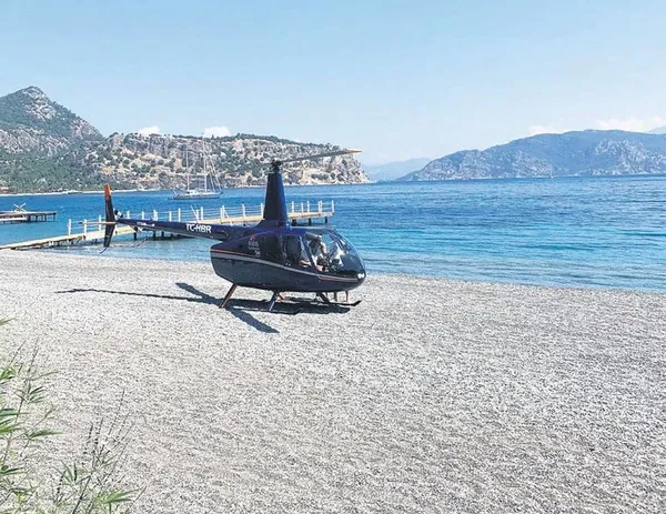 Yazın gelmesiyle Ege ve Akdeniz kıyıları hareketlendi. Muğla Marmaris'teki Kumlubük Koyu ise skandalla gündeme geldi! Robinson R66 tipi helikopter, pazar günü 5 yıldızlı otele ait sahile indi! Pilotun, otelin yanındaki yat kulübüne müşteri getirdiği söylendi. Bereket Enerji'de kayıtlı helikopterin, iki yıl önce VAV Teknoloji Bilişim Sanayi Ve Ticaret AŞ'ye satıldığı belirlendi.