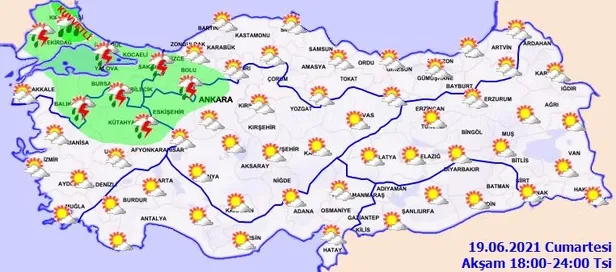 Kuvvetli yağışların 19.06.2021 Cumartesi günü akşam saatlerinden sonra etkisini kaybedeceği tahmin ediliyor.