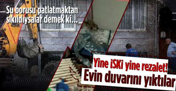 Yine İSKİ yine rezalet! Su borusu patlamasıyla ünlü İSKİ bu kez de bir evin duvarını yıktı!