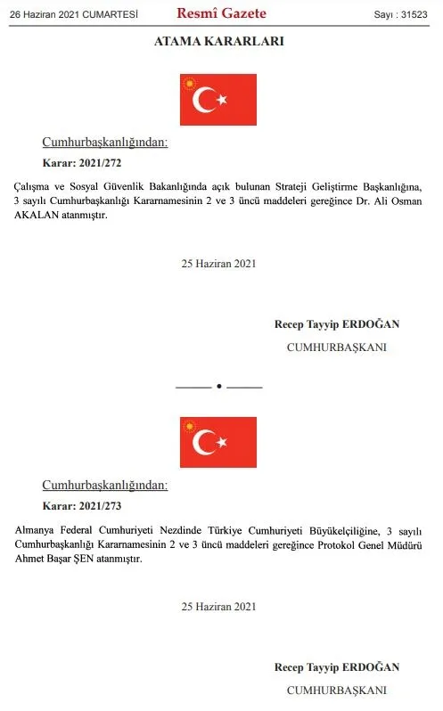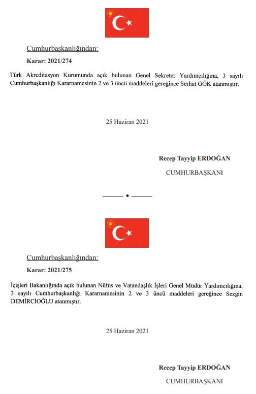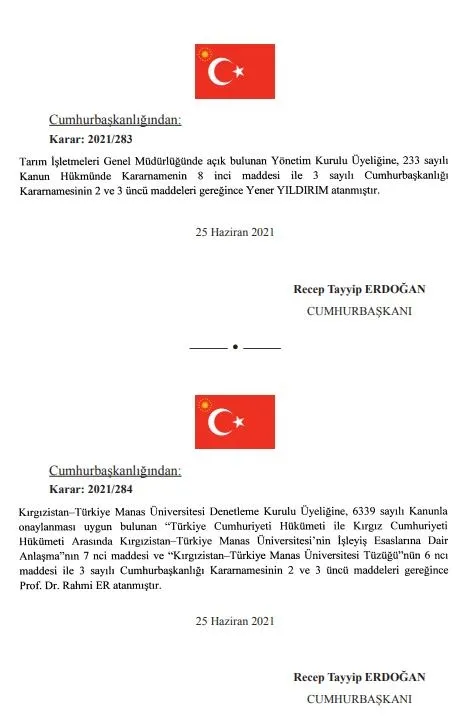 Son dakika: Başkan Erdoğan'ın imzaladığı atama kararları Resmi Gazete'de