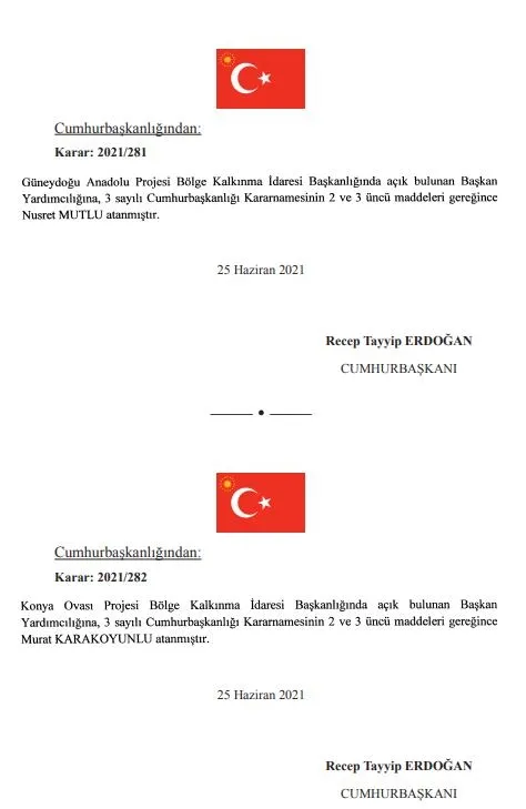 Güneydoğu Anadolu Projesi Bölge Kalkınma İdaresi Başkanlığında açık bulunan Başkan Yardımcılığına, Nusret Mutlu atandı.