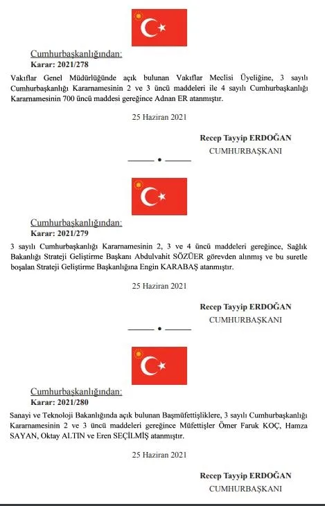 Sağlık Bakanlığı Strateji Geliştirme Başkanı Abdulvahit Sözüer görevden alındı yerine Engin Karabaş atandı.