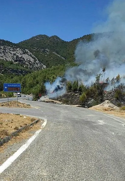 Antalya- Konya karayolunun Manavgat ilçesi yakınlarındaki Gündoğmuş kavşağında saat 14.00 sıralarında orman yangını çıktı.