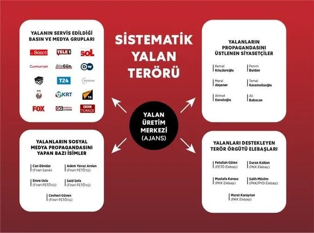 Yalanların sosyal medya propagandasını yapan isimler arasında Can Dündar, Cevheri Güven, Adem Yavuz Arslan, Emre Uslu, Said Sefa gibi Türkiye düşmanı isimlerin olması dikkat çekti.