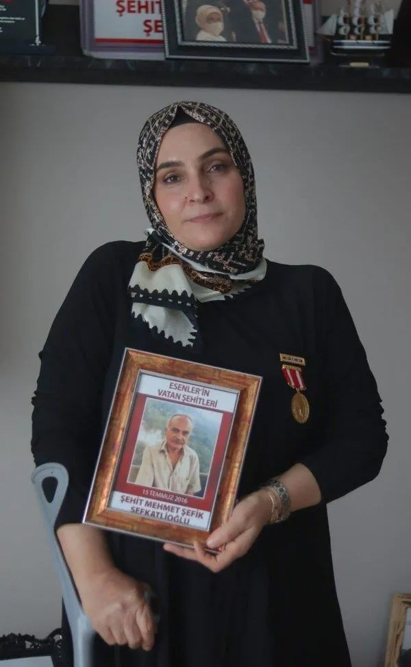 Hain kalkışmanın 5'inci yıl dönümünde yaşadıklarını anlatan Şefkatlioğlu, "Hastanede gözlerimi açtığımda sorduğum ilk soru "vatan kurtuldu mu" olmuştu. Daha sonra eşimin şehit düştüğünü öğrendim. Benim sol bacağım da tamamıyla koptu, sağ bacağım ise kullanılamaz hale geldi. Beni ayakta tutan bir eşimdi, bir de bacaklarım. İkisini de kaybettim. Geriye dönüp baktığımda yine olsa yine yaparım diyorum. Vatan için ödediğim bedel "engel" değil, şereftir" ifadelerini kullandı.