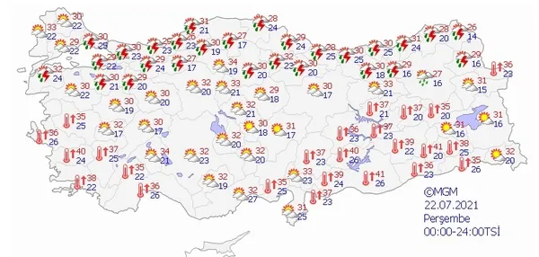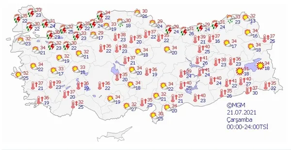 21 TEMMUZ 2021 ÇARŞAMBA HAVA DURUMU