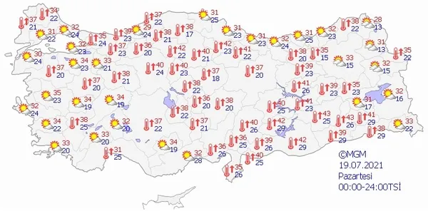 19 TEMMUZ 2021 PAZARTESİ HAVA DURUMU
