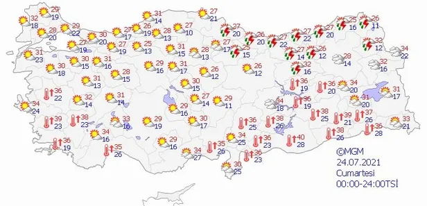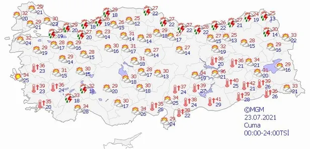 Bazı illerde beklenen hava durumuyla günün en yüksek sıcaklıkları ise şöyle: