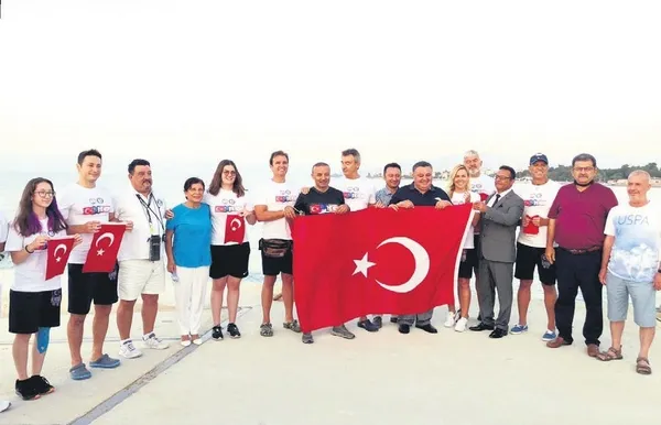 Türk yüzme takımı, dün Türk Bayrağı'nı taşımak üzere Mersin Anamur'dan Kıbrıs'a yüzmeye başladı. Devlet Eski Bakanı Kürşat Tüzmen'in de bulunduğu milli yüzücüler 30-35 saat kulaç atarak bugün KKTC'ye çıkacak. Ve Türk Bayrağı'nı Yavru Vatan'a ulaştıracak...