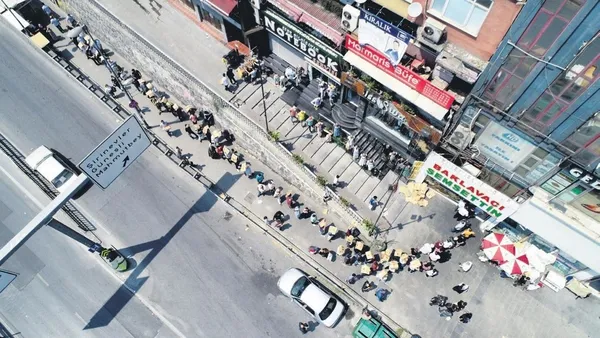 Bodrum ve Çeşme'de araç, İstanbul'da ise baklava kuyruğu vardı. Bayramda ağızlarını tatlandırmak isteyenler, Bahçelievler'deki baklavacının önünde sıralandı. Kilosu 19 lira olan baklavadan satın almak için saatlerce kuyrukta kaldı! Karton parçalarıyla da kendilerine gölge yaptı.