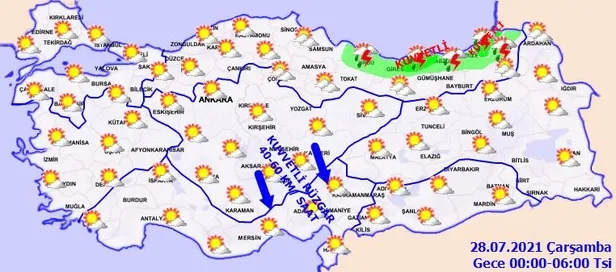 Meteoroloji Genel Müdürlüğü tarafından yapılan son değerlendirmelere göre, ülkemizin kuzey ve iç kesimlerinin parçalı ve çok bulutlu, İç Anadolu'nun kuzeydoğusu, Batı Karadeniz'in iç kesimleri, Orta ve Doğu Karadeniz ile Doğu Anadolu'nun kuzey kesimlerinin yerel olmak üzere aralıklı sağanak ve gök gürültülü sağanak yağışlı, diğer yerlerin az bulutlu ve açık geçeceği tahmin ediliyor. Yağışların; Orta ve Doğu Karadeniz kıyılarında kuvvetli, Ordu, Giresun ile Trabzon'un batısında yer yer çok kuvvetli ve şiddetli (51-100 kg/m2), Rize ile Artvin'in kıyı kesimlerinde şiddetli ve aşırı (75-150 kg/m2) olması bekleniyor.