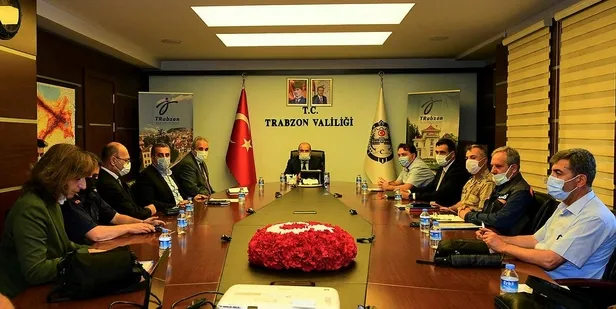 Trabzon'da da Vali İsmail Ustaoğlu, valilik toplantı salonundan kamu kurum müdürleriyle bir araya geldi.