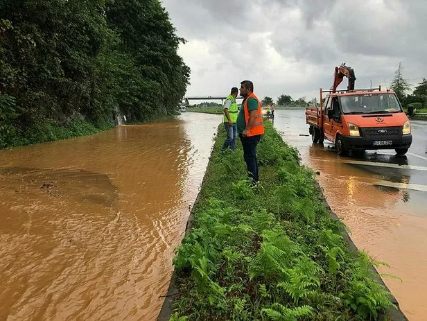 Pazar ilçesinin Melyat mevkisinde sağanak nedeniyle debisi artan yan dere taştı. Karadeniz Sahil Yolu'na akan su nedeniyle ulaşımda aksama meydana geldi.