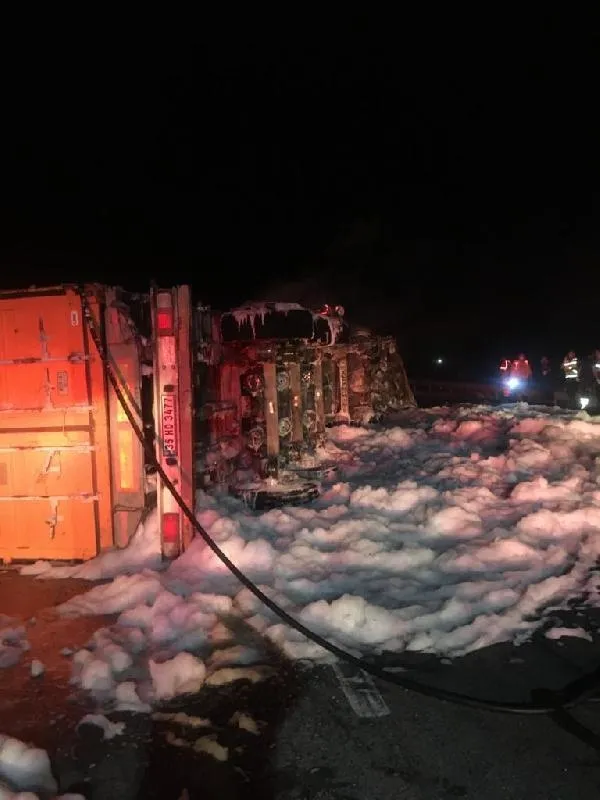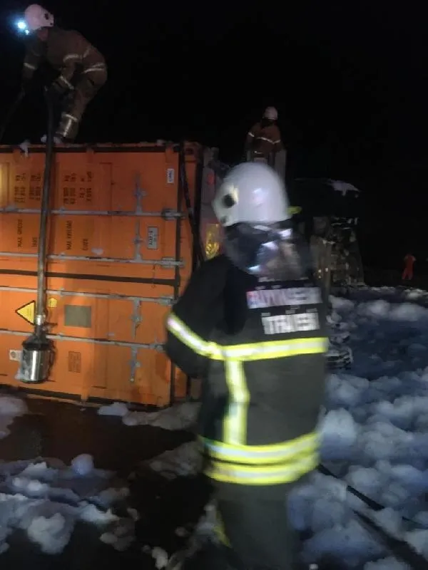 Kaza sonrası TIR'ın motor kısmında yangın çıktı. Kazayı gören çevredeki vatandaşların ihbarı üzerine olay yerine sağlık, itfaiye ve polis ekipleri sevk eidldi. İtfaiye ekipleri, yanan TIR'a müdahale ederek yangını söndürdü.