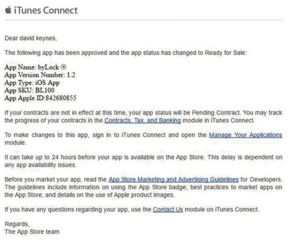 Programın örgüt üyelerine daha hızlı ulaştırılmasının sağlanması ve aynı zamanda bu uygulamanın herkese açık bir uygulama olduğu izlenimi verilmesi amacıyla Apple Market (App Store) ve Google Market'e (Google Play) şüpheli David Keynes'in kimlik bilgileri, mail bilgileri ve şüphelinin isimleri üzerine oluşturulan mail hesaplarıyla yüklendiği, şüphelinin de örgütün Kriptolu Yazışma sistemi olan ByLock sistemine dahil edildiği, şüphelinin, ByLock programının geliştiricisi Atalay Candelen'in ortağı ve yetkilisi olduğu Base Bilgi Teknolojileri Limited Şirketinde SGK kaydının yapıldığı belirtildi.