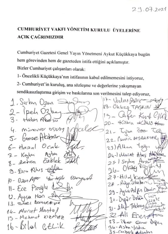Öte yandan Cumhuriyet çalışanları istifanın kabul edilmemesi için imza topladı.