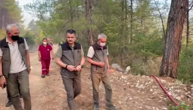 Bakan Pakdemirli daha sonra orman sahasına giderek yangınla mücadele eden itfaiye ekiplerini ziyaret etti. Bir süre daha bölgede inceleme yapan Bakan Pakdemirli, daha sonra yangının izleme merkezi olan Ulualan Yangın İzleme ve Kontrol Merkezine hareket etti.