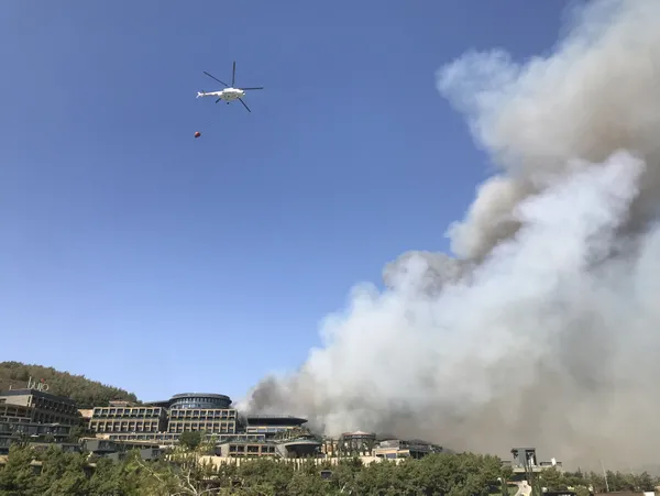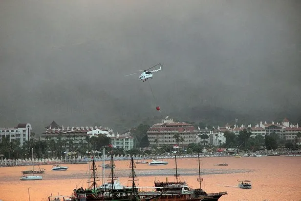 Muğla'nın Marmaris ilçesindeki orman yangınına takviye olarak 1 helikopter, 7 arazöz, 6 dozer, 8 itaiye aracı ve 7 su tankeri takviye olarak gönderildi. 6 helikopter 200 metre mesafedeki denizden su alarak 3 saatte alevlere 95 sorti yaparak, müdahale etti. Yanan çam kozalaklarının patlaması sonucu alevlerin sıçradığı 3 apartmanın çatı katı yandı. Binaların çatı katındaki alevler itfaiye ekiplerinin müdahalesiyle büyümeden söndürüldü.