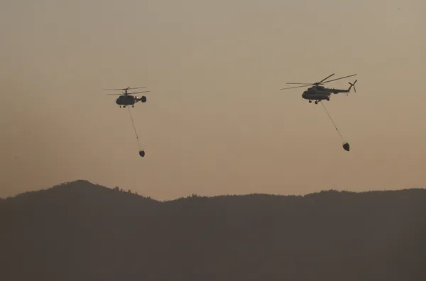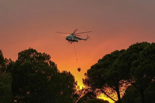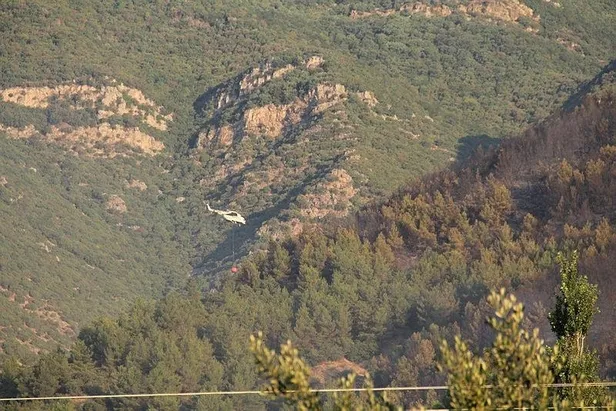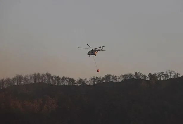 Söndürme helikopterleri de sabahın ilk ışıklarıyla söndürme çalışmalarına havadan destek veriyor.