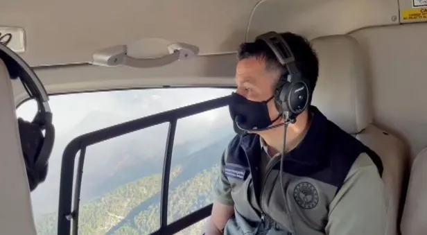 Tarım ve Orman Bakanı Bekir Pakdemirli, Antalya'nın Manavgat ilçesinde yangının devam ettiği bölgeyi havadan helikopter ile inceledi.