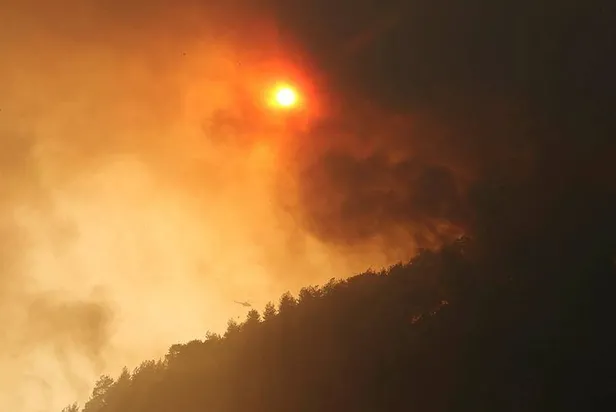 Bölgedeki kara yolu trafiğe kapatıldı, sadece yangın söndürme araçlarının geçişine izin veriliyor.