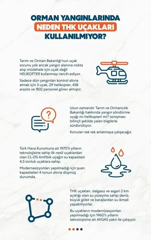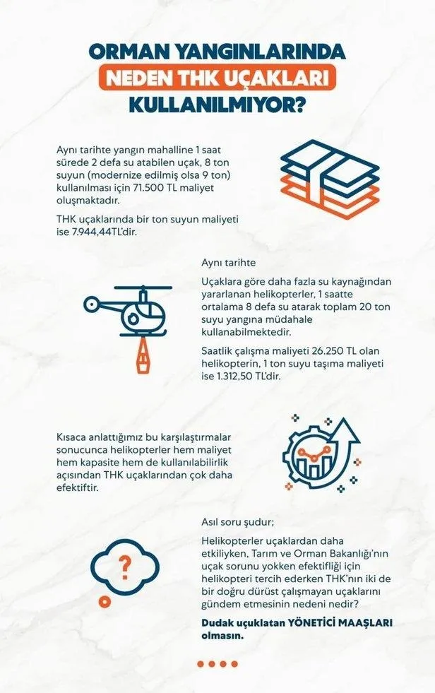 Türkiye'de her yıl meydana gelen orman yangınlarıyla birlikte "THK uçakları kullanılmıyor, helikopterler yetersiz kalıyor. THK uçakları kullanılsa orman yangınları daha çabuk söndürülür" gibi söylemlerle yaratılan algıyla Türkiye'nin orman yangınlarına karşı bilerek mücadele etmediği ve yetersiz kaldığı üzerinden algı yaratılıyor.