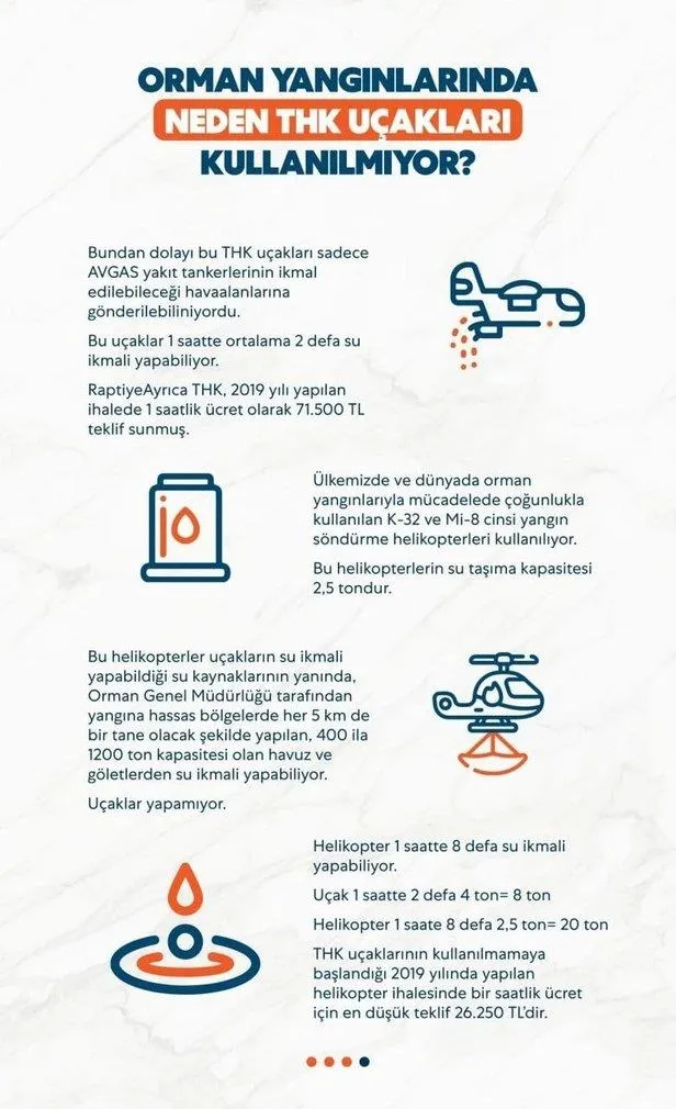 "THK'nın uçakları varmış, neyi biliyorsun da söylüyorsun. THK'nın elinde rahatlıkla kullanılabilecek uçak falan yok. Bunlar uyduruyorlar. Biz ise burada 45 helikopterle çalışıyoruz. Bunların yanında şu anda biz bugün itibariyle uçak sayımız 5-6'ya çıkmış vaziyette. Rusya'dan, Ukrayna'dan aldığımız uçaklar var. Azerbaycan da bir amfibi uçağını gönderecek. İHA'larla bölgenin durumunu inceliyoruz."
