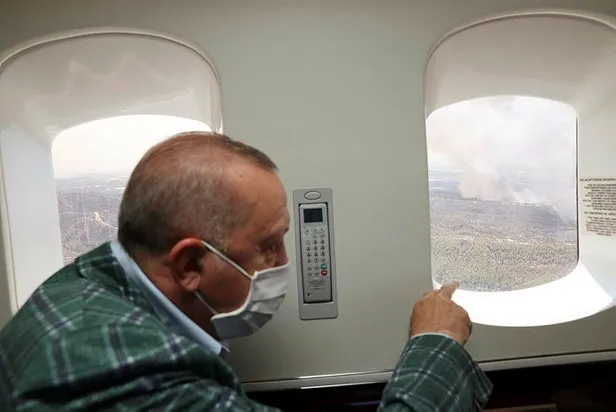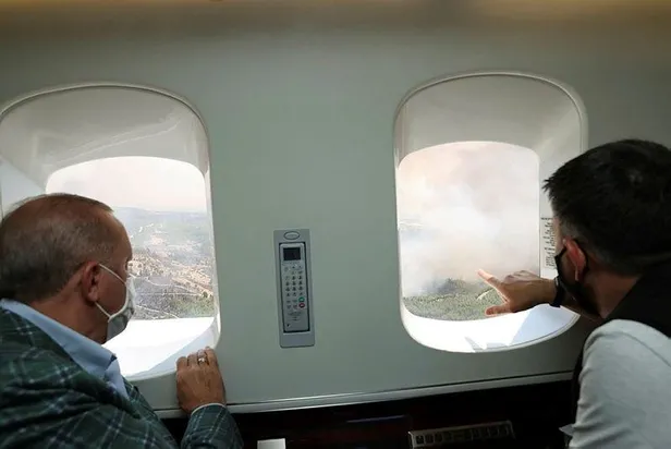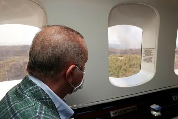 Başkan Erdoğan, yangından etkilenen bölgelerde havadan incelemelerde bulundu. Tarım ve Orman Bakanı Bekir Pakdemirli, Başkan Erdoğan'a yanan mahalleleri, yangının seyrini ve ilerlediği alanları gösterdi. Erdoğan, Manavgat Gençlik Merkezi'nde bilgi alıp, inceleme yaptıktan sonra Marmaris'e geçecek.