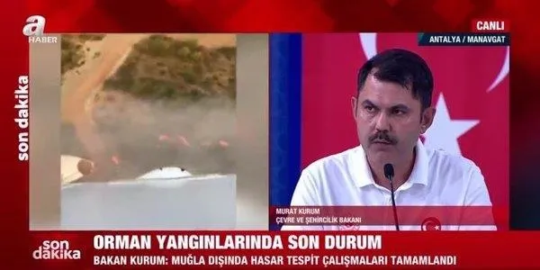 Çevre ve Şehircilik Bakanı Murat Kurum, Dışişleri Bakanı Mevlüt Çavuşoğlu ile Ulaştırma ve Altyapı Bakanı Adil Karaismailoğlu yangınlara ilişkin son durumu açıkladı.