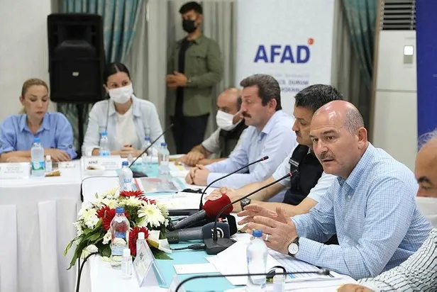 Tarım ve Orman Bakanı Bekir Pakdemirli'nin ardından söz alan İçişleri Bakanı Süleyman Soylu, yangın ile mücadele etmenin yanında devlet olmanın gereği olarak vatandaşların zararlarının da karşılanması için çalışma yürüttüklerini söyledi. Bakan Soylu, "Şu ana kadar 54 ayrı birimden yangın sebebiyle 11 bin 844 haneden 36 bin 365 vatandaşımız tahliye edildi. Bunların bir kısmı KYK misafiri oldular, bir kısmı konteyner ve çadırlarda barınıyor, diğer bir kısmı da kendi aileleri, yakınları ve akrabalarına intikal ettirildiler. Muğla ölçeğinde 971 bina, bin 943 bağımsız bölüm tespiti yapılmıştır. Bunların bir bölümü az hasarlıdır, bir bölümü orta, bir bölümü ağır bir bölümü de yıkıktır. Toplamda 156 bina ve acil yıkılacak, ağır hasarlı 77 konut da yine aynı kapsamdadır. Hem Çevre ve Şehircilik Bakanlığı, hem Aile ve Sosyal Politikalar Bakanlığı, hem de AFAD toplamda buraya 20 milyon TL'lik bir yardım göndermiştir. Zarar tespiti yapılanlarla ilgili hem eşya, hem de kiraya çıkma yardımları da tespit edildiği andan itibaren vatandaşlarımızın hesaplarına aktarılmaktadır. Kızılay da tüm afet bölgelerinde vatandaşımız ve yangınla mücadele eden ekiplerimizin yanındadır. Yemek dağıtımı, su, ikramlık malzeme gibi tüm konularda Kızılay gereğini yapmaktadır. Yine elektrik kısmen verilemeyen mahalleler var ama tam verilemeyen bir tek mahalle var. Yaklaşık 10 kilometrelik bir hat var şu anda sıkıntılı olan ve tamiri gereken. 103 elektrik direğinde de hasar var. Bunların da gereği yapılmaya çalışılmaktadır. 552 kişi yangından etkilenerek hastanelere müracaat etmiştir. Kimisinin müşahedesi kimisinin ise yatarak tedavisi devam etmektedir" dedi.