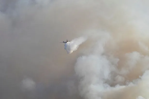 Öte yandan, Muğla'da devam eden orman yangınlarını havadan izleyen İnsansız Hava Aracı (İHA), uçakların yanan bölgelere su atmasını paylaştı.