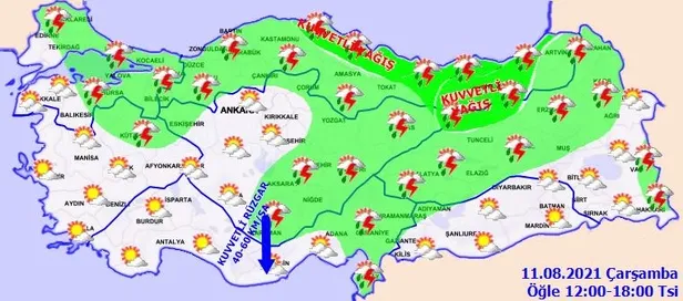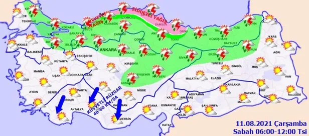 Bartın'da etkili olan şiddetli sağanak bazı bölgelerde sele yol açarken bir kişi hayatını kaybetti. Kuvvetli sağanak sonrası Meteoroloji Genel Müdürlüğünden hava durumuyla ilgili son dakika uyarıları gelmeye devam ediyor. Yapılan son değerlendirmelere göre, kuvvetli yağışın Karadeniz kıyıları ile Tokat, Erzincan, Gümüşhane ve Bayburt çevrelerinde kuvvetli, Sinop,Samsun ve Ordu çevreleri ile Kastamonu'nun kuzeyi ile Bartın'ın doğusunda etkili olması bekleniyor. İşte il il 11 Ağustos hava durumu raporu.