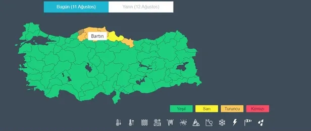 Bartın, Karabük, Kastamonu, Sinop ve Ordu için turuncu kod Samsun için sarı kodlu uyarı yapıldı.