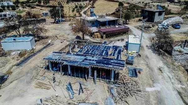 Yangında yıkılan evlerin yenisi yapılmaya başlandı: Yanmaz malzemelerden yapılıyor! 10 günde tamamen bitecek....