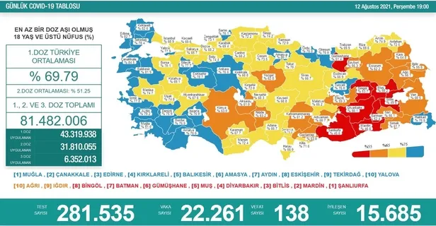 Sağlık Bakanlığı tabloyu paylaştı! İşte 12 Ağustos 2021 koronavirüs vaka, vefat ve aşı sayıları