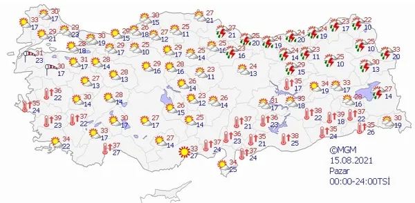 15 AĞUSTOS 2021 PAZAR HAVA DURUMU