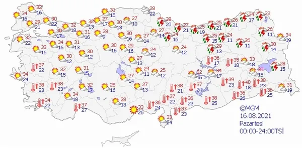 16 AĞUSTOS 2021 PAZARTESİ HAVA DURUMU