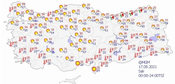 17 AĞUSTOS 2021 SALI HAVA DURUMU