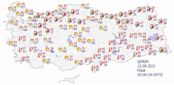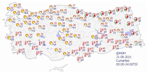 21 AĞUSTOS 2021 CUMARTESİ HAVA DURUMU