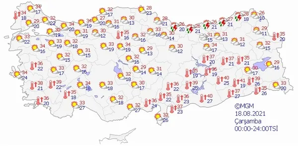 18 AĞUSTOS 2021 ÇARŞAMBA HAVA DURUMU